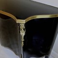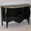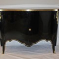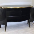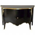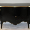 Beautiful 20th century French Louis XV style black lacquered commode or chest with brass ormolu mounts and gold painted detailing. A traditional form with modern interpretation.
