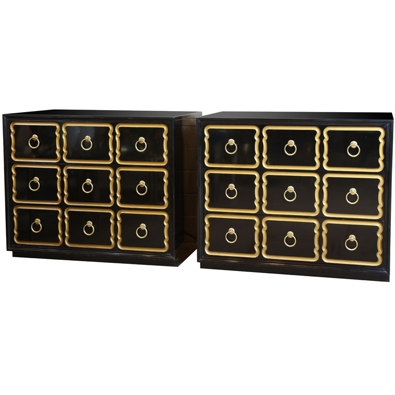 Pair of Dorothy Draper Black Lacquer Espana Dressers by Heritage