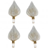 Set Four Murano Italian Rugiadoso Clear Leaf Wall Sconces