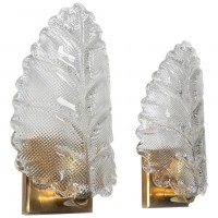 Pair of Murano Italian Clear Textured Leaf Wall Sconces