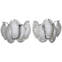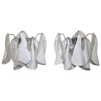 Pair of Murano Mazzega White Petal Shape Glass Sconces