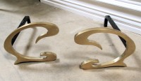 Pair of Heavy Bronze and Cast Iron Horse Equestrian Andirons