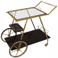 Italian Brass Faux Bamboo and Mahogany Bar Cart