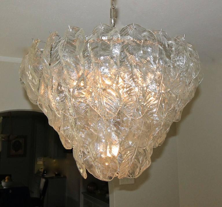 Large Italian Murano Mazzega Clear Glass Leaf Chandelier