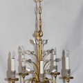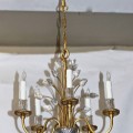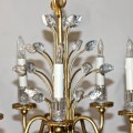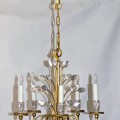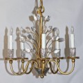 Elegant five-light chandelier in gilt metal with delicate crystal leaf motif in the style of Maison Baguès. Newly wired. 17″ diameter x 17″ tall, with chain and canopy 30″ overall height can be adjusted as needed.