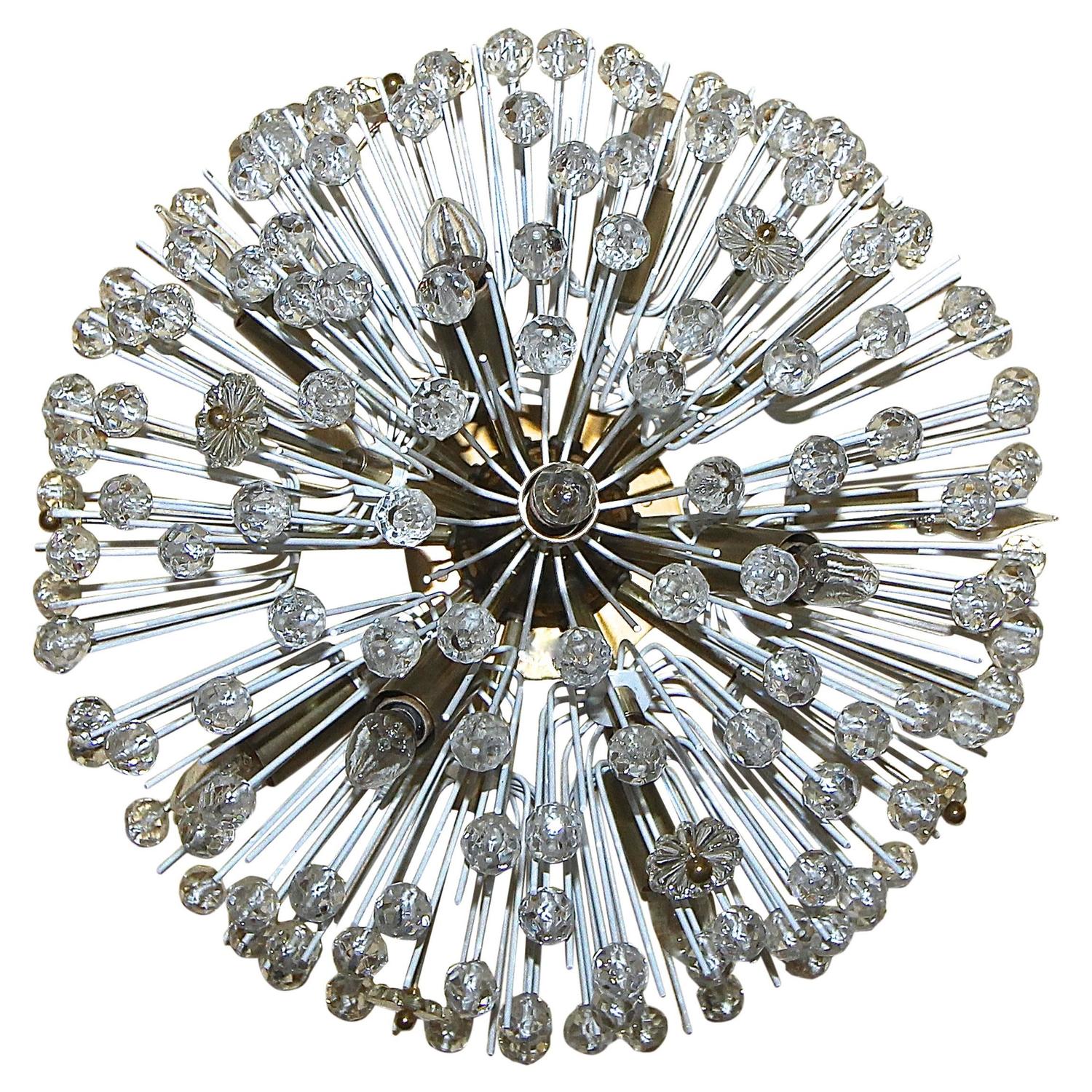 Emil Stejnar Style Brass and Glass Flush Mount Sputnik Snowball Chandelier