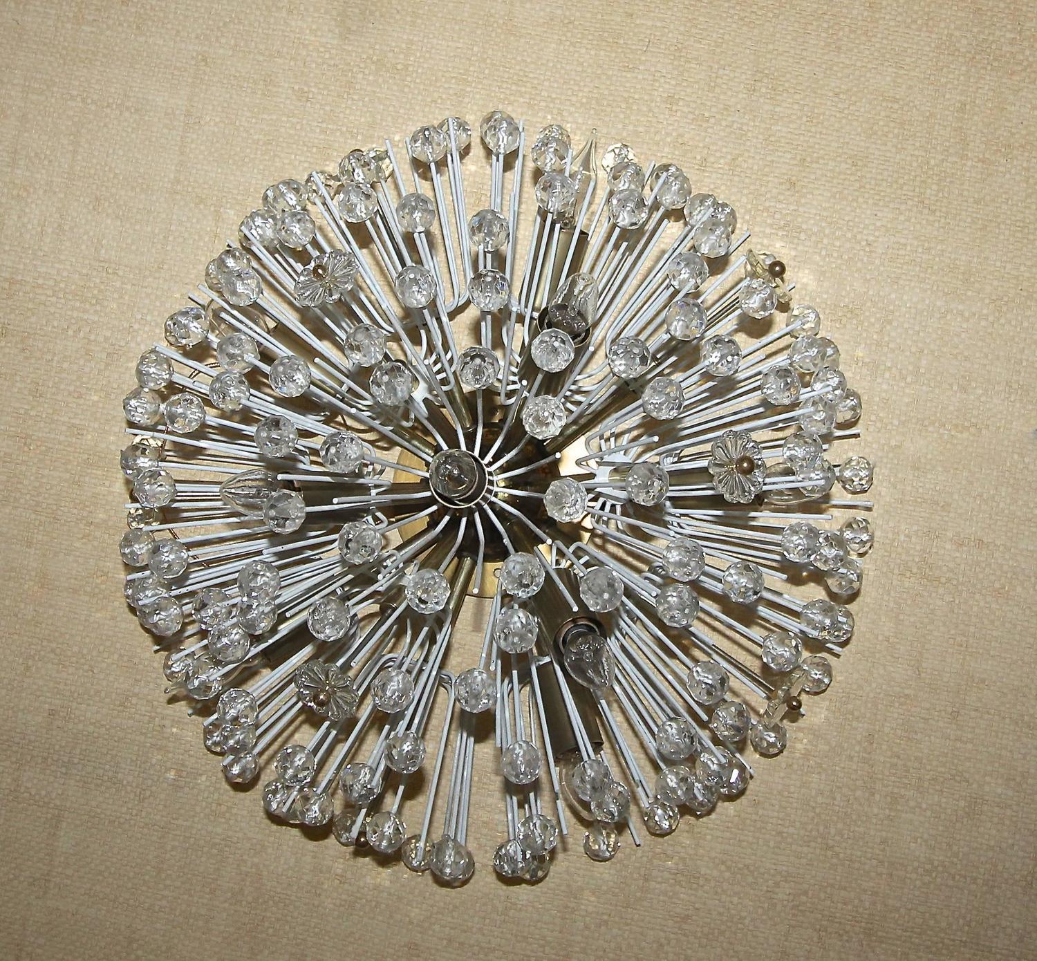 Emil Stejnar Style Brass and Glass Flush Mount Sputnik Snowball Chandelier