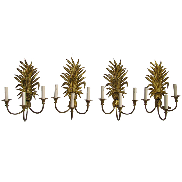 ← Pair Large French Bagues Wheat Gilt Bronze Wall Sconces