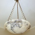 Diameter of alabaster 16″ x 5″ deep, overall height including chain and ceiling cap 31″.