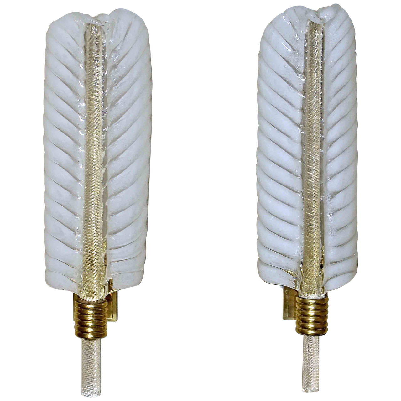 Huge Pair of André Arbus Glass Plume Sconces by Veronese