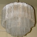 Beautiful Murano glass chandelier with 3 tiers of unique rectangular shaped textured glass on a white steel structure frame. 12 candelabra base sockets, newly wired.