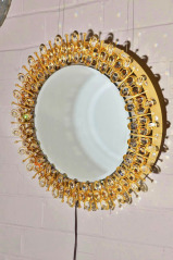 Lobmeyr Round Gold Crystal Illuminated Wall Mirror