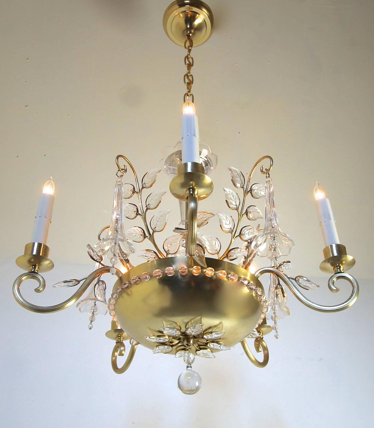 Maison Bagues Style Crystal Leaf Chandelier or Pendant Light