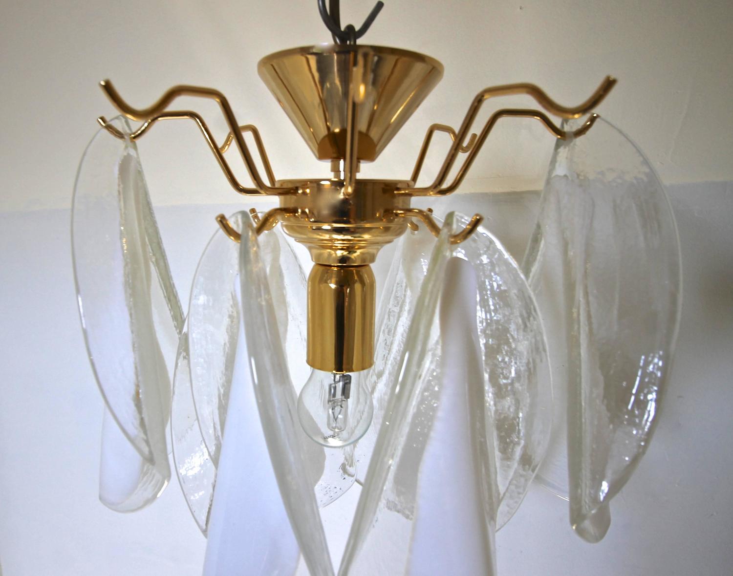 Mazzega Murano Clear and White Petal Flush Mount Ceiling Light