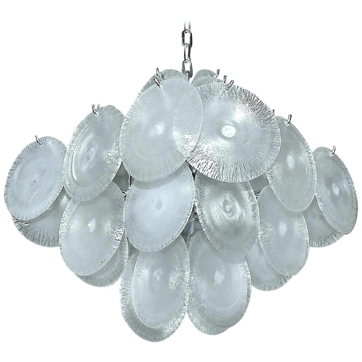 Mazzega Murano Iridescent Disc Glass Chandelier