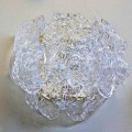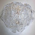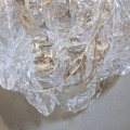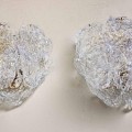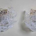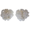 Pair of Italian Murano handblown glass wall sconces with sculpted clear textured panels on brass-plated backplates. Each fixture uses 2 – 40 watt max candelabra base bulbs. Newly wired.
