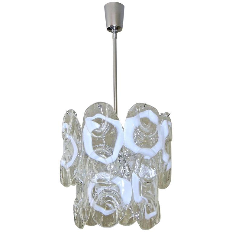 Murano Textured White Clear Glass Panel Chandelier by Mazzega