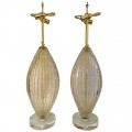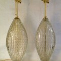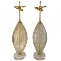 Pair Monumental Barovier Murano Oval Table Lamps With Gold Inclusions
