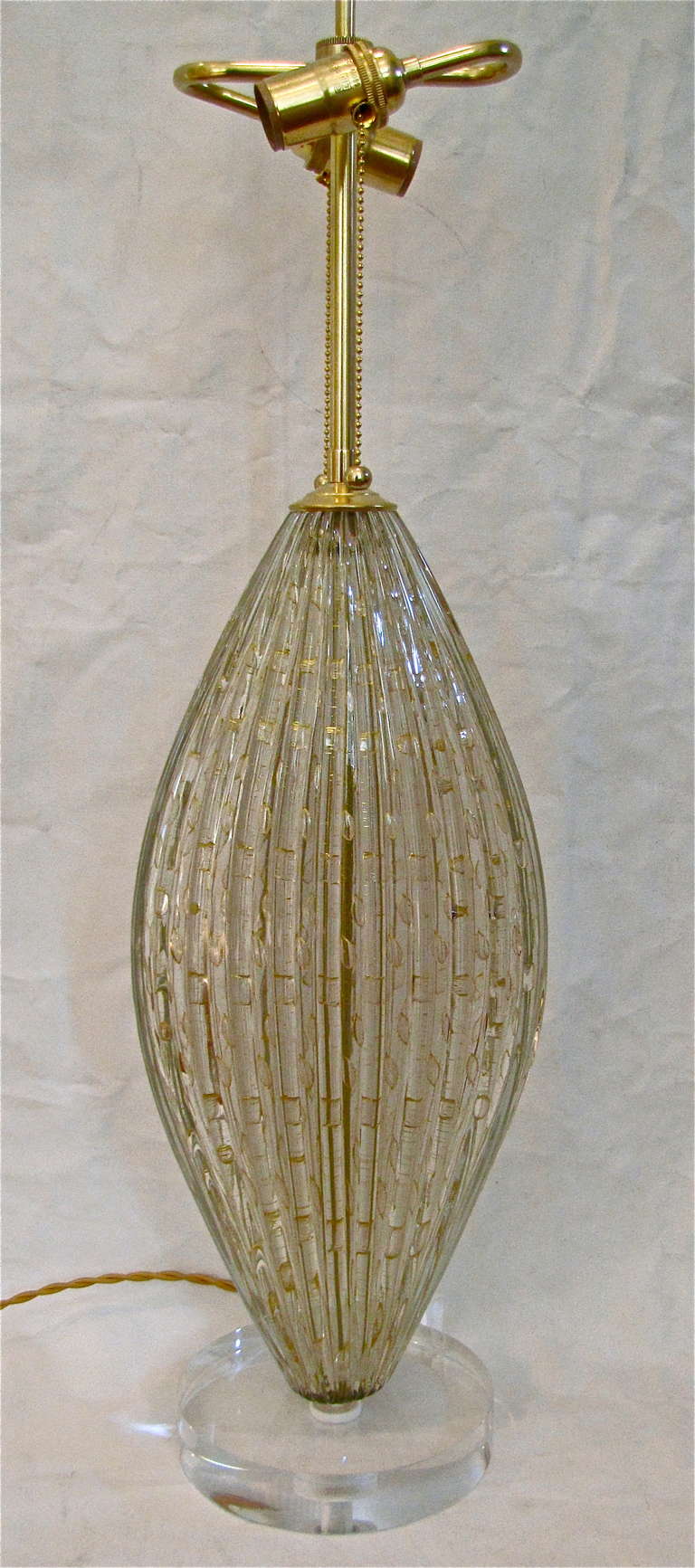 Pair Monumental Barovier Murano Oval Table Lamps With Gold Inclusions