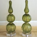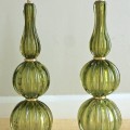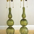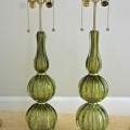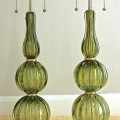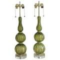 Pair of Absinthe Colored Ribbed Murano Seguso Glass Lamps