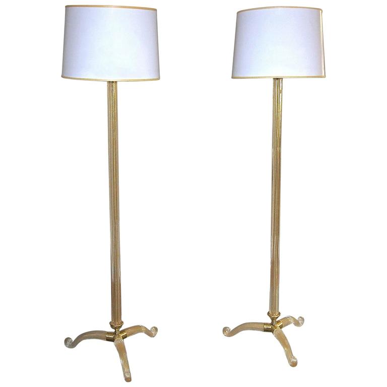 Pair of Barovier Murano Gold and Clear Glass Tripod Floor Lamps
