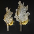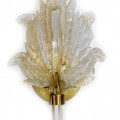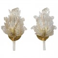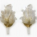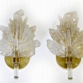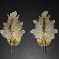 Pair of Barovier Murano Rugiadoso Gold Clear Leaf Wall Sconces