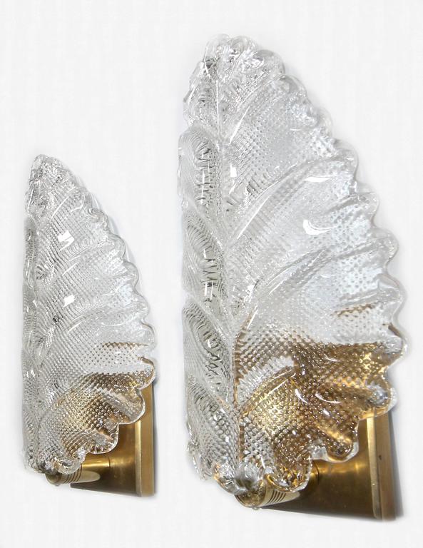 Pair of Murano Italian Clear Textured Leaf Wall Sconces