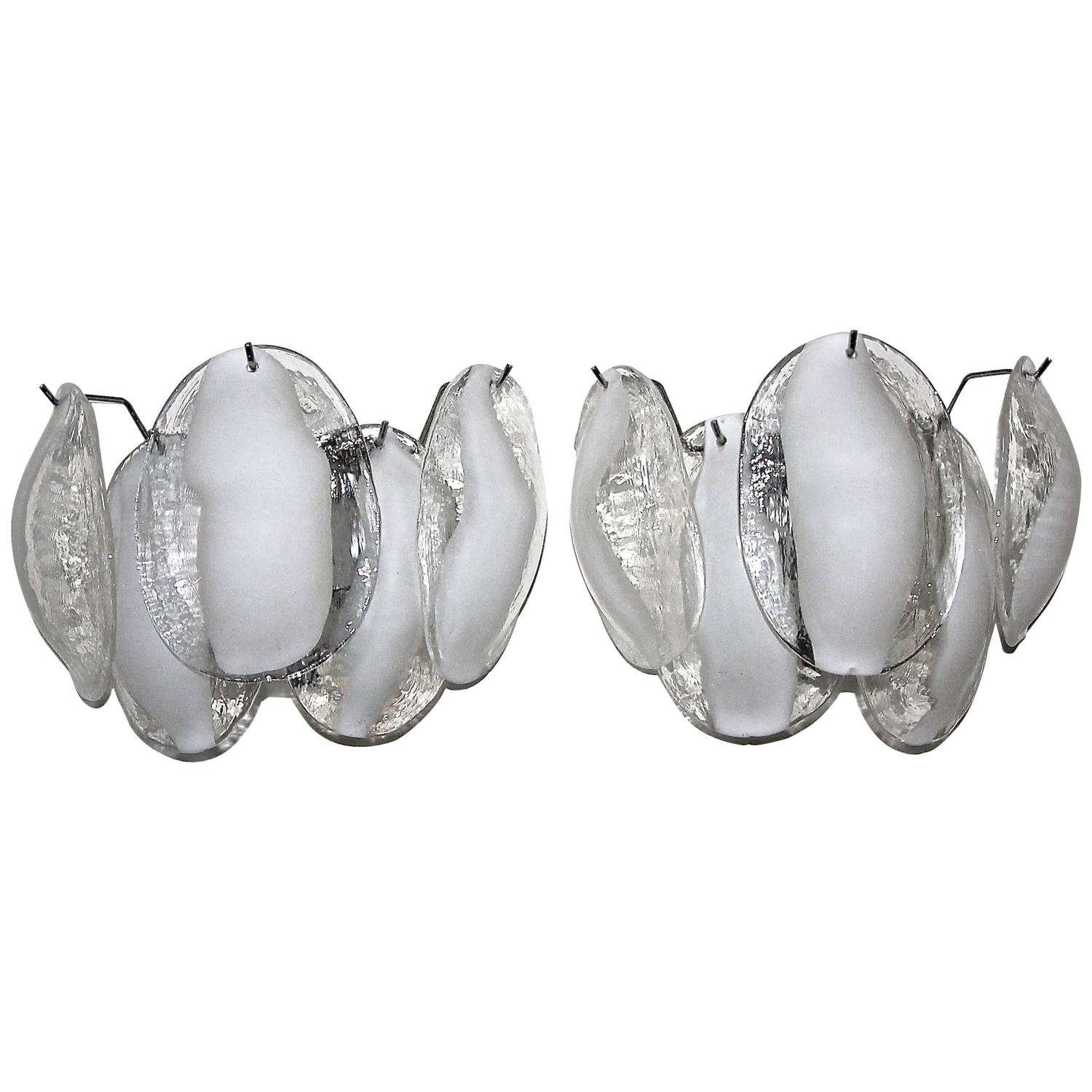 Pair of Murano White and Clear Glass Sconces