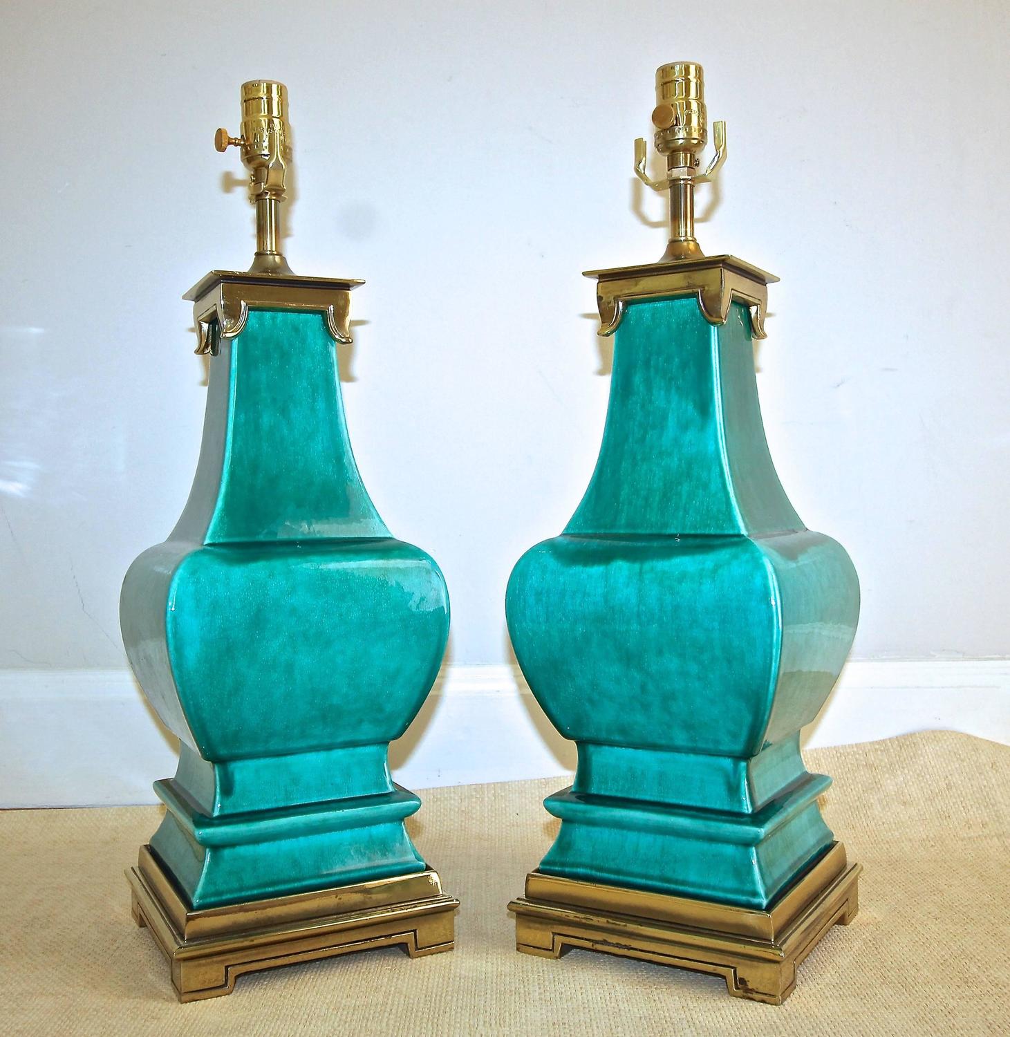 Pair of Stiffel Asian Style Turquoise Ceramic Lamps
