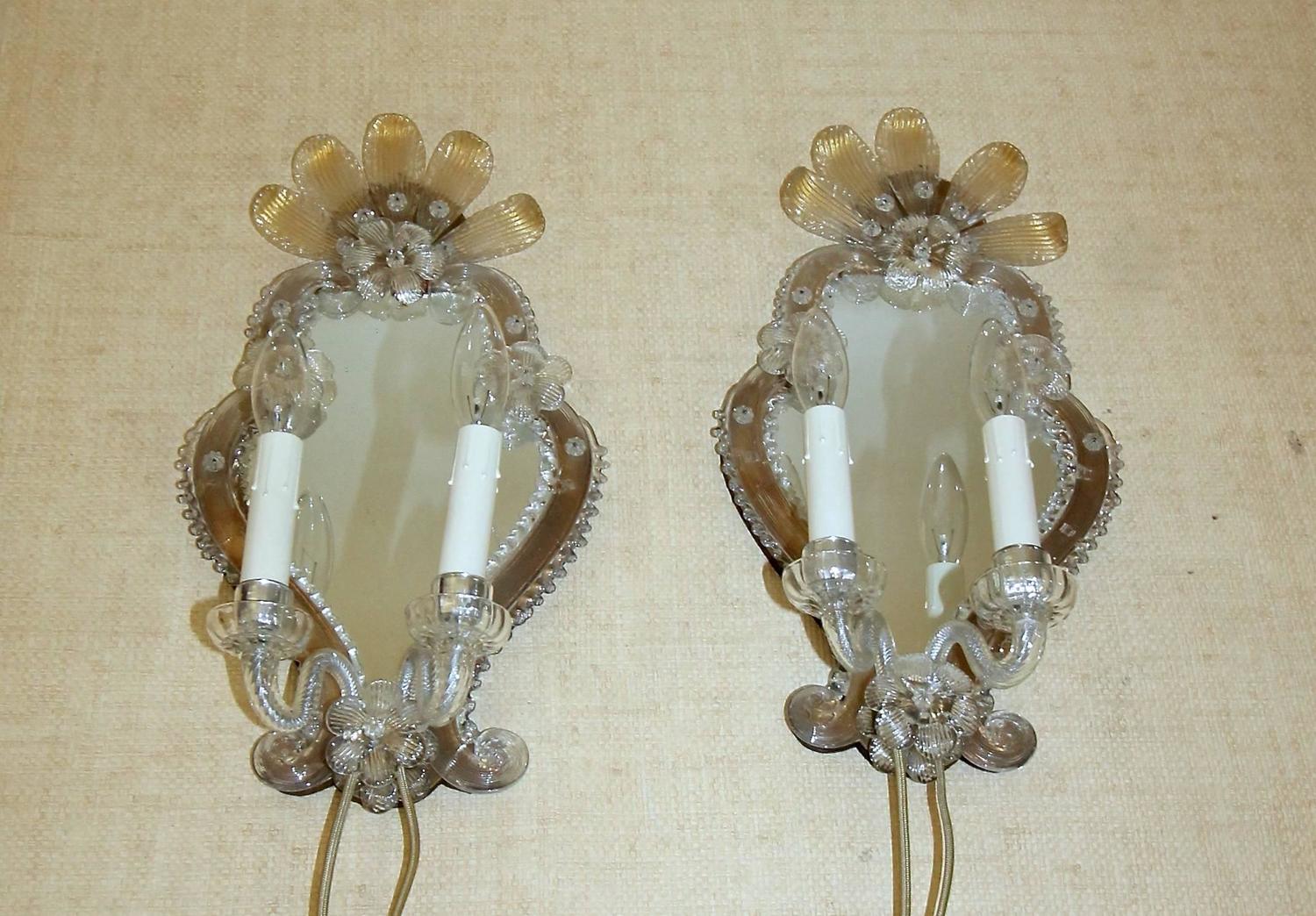 Pair of Venetian Italian Mirrored Wall Sconces