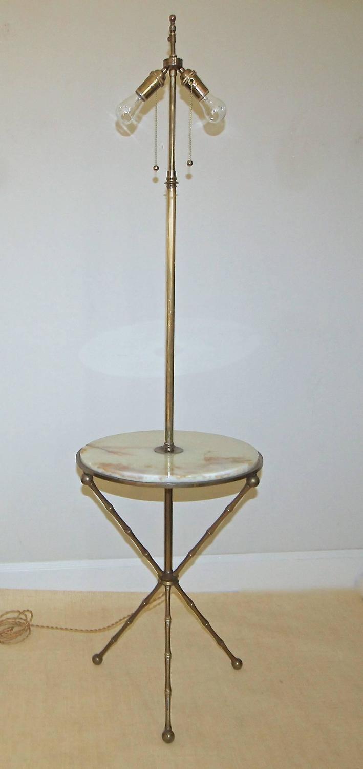Rare Bagues Bronze Faux Bamboo Tripod Lamp Table