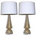 Rare Pair of Ercole Barovier Graffito Gold Murano Lamps