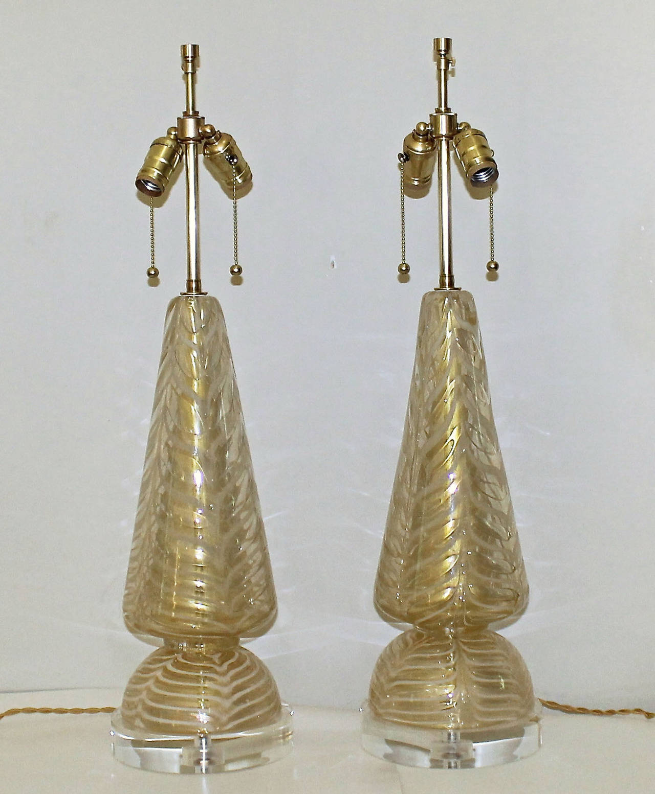 Rare Pair of Ercole Barovier Graffito Gold Murano Lamps