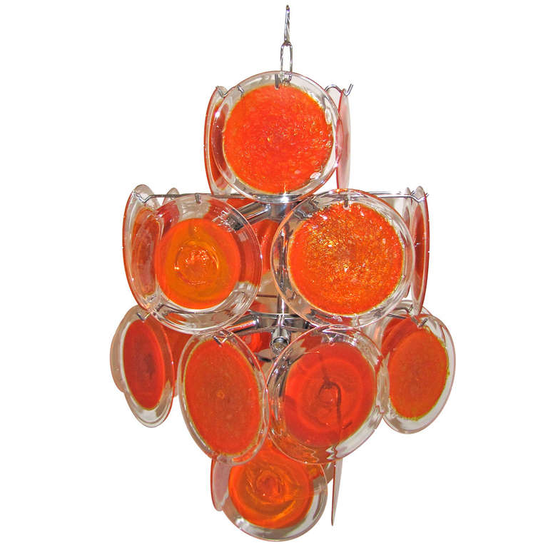 Vistosi Orange Disc Italian Chrome Chandelier
