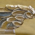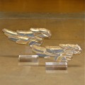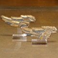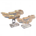 Pair of large exquisite carved wood parcel gilt wings on custom acrylic stands.