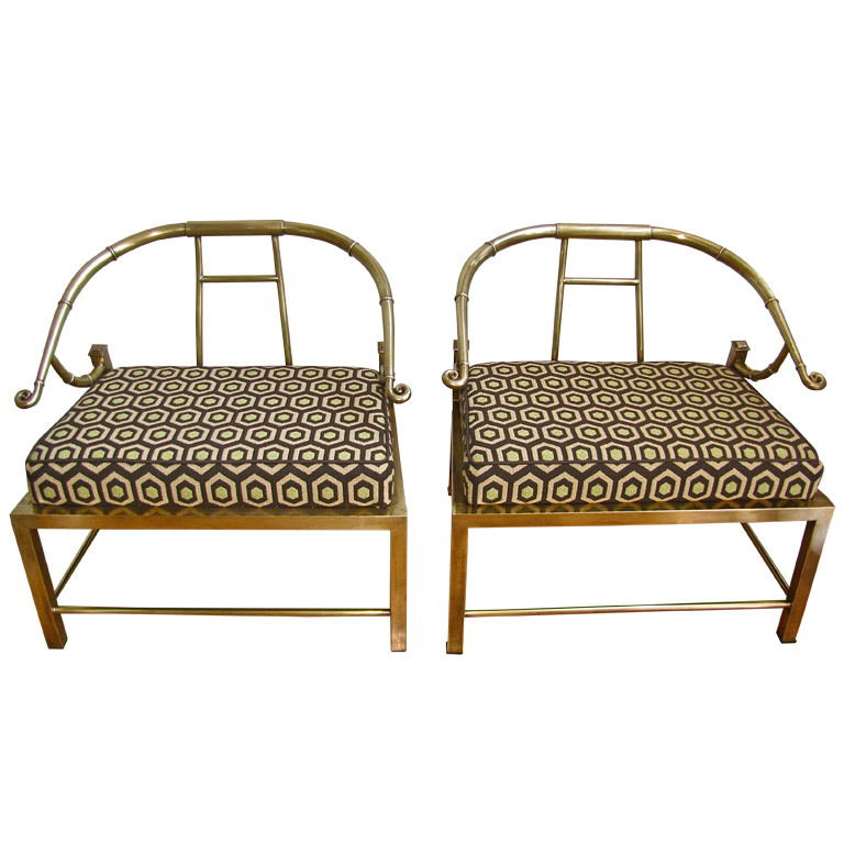 Pair Brass Asian Empress Style Arm Chairs by Mastercraft
