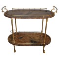 Aldo Tura Italian Lacquered Brown Goatskin Bar Cart