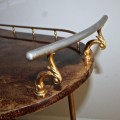 Brown stained and lacquered goatskin bar cart with gold-plated hardware by Aldo Tura.