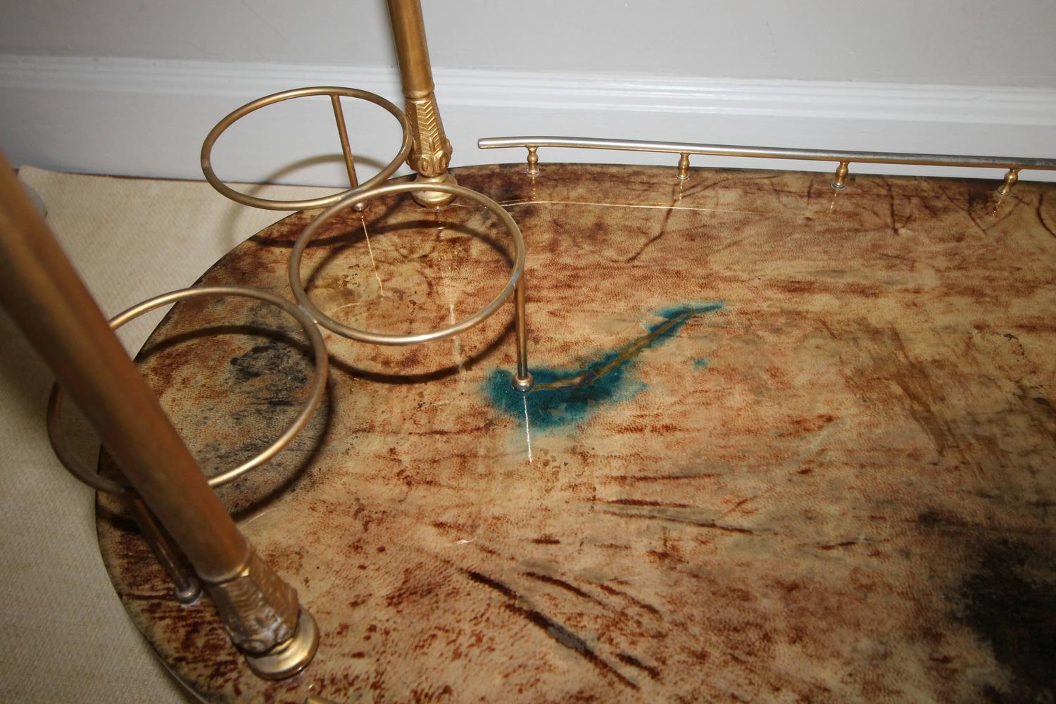 Aldo Tura Italian Lacquered Brown Goatskin Bar Cart