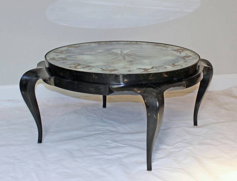 Exceptional Eglomise Zodiac Cocktail Table by Harriton