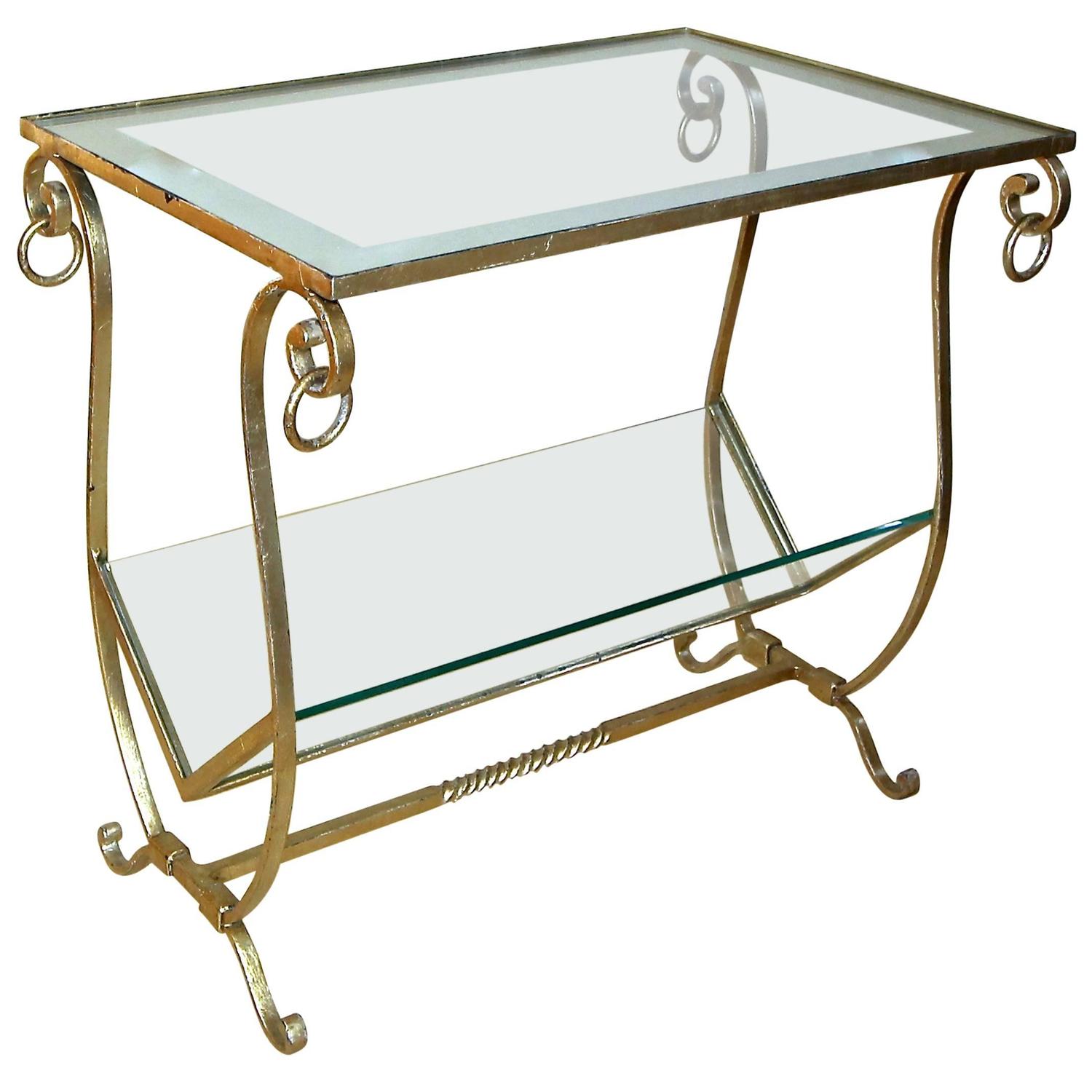 Gilt Metal Combination Side Table Magazine Rack