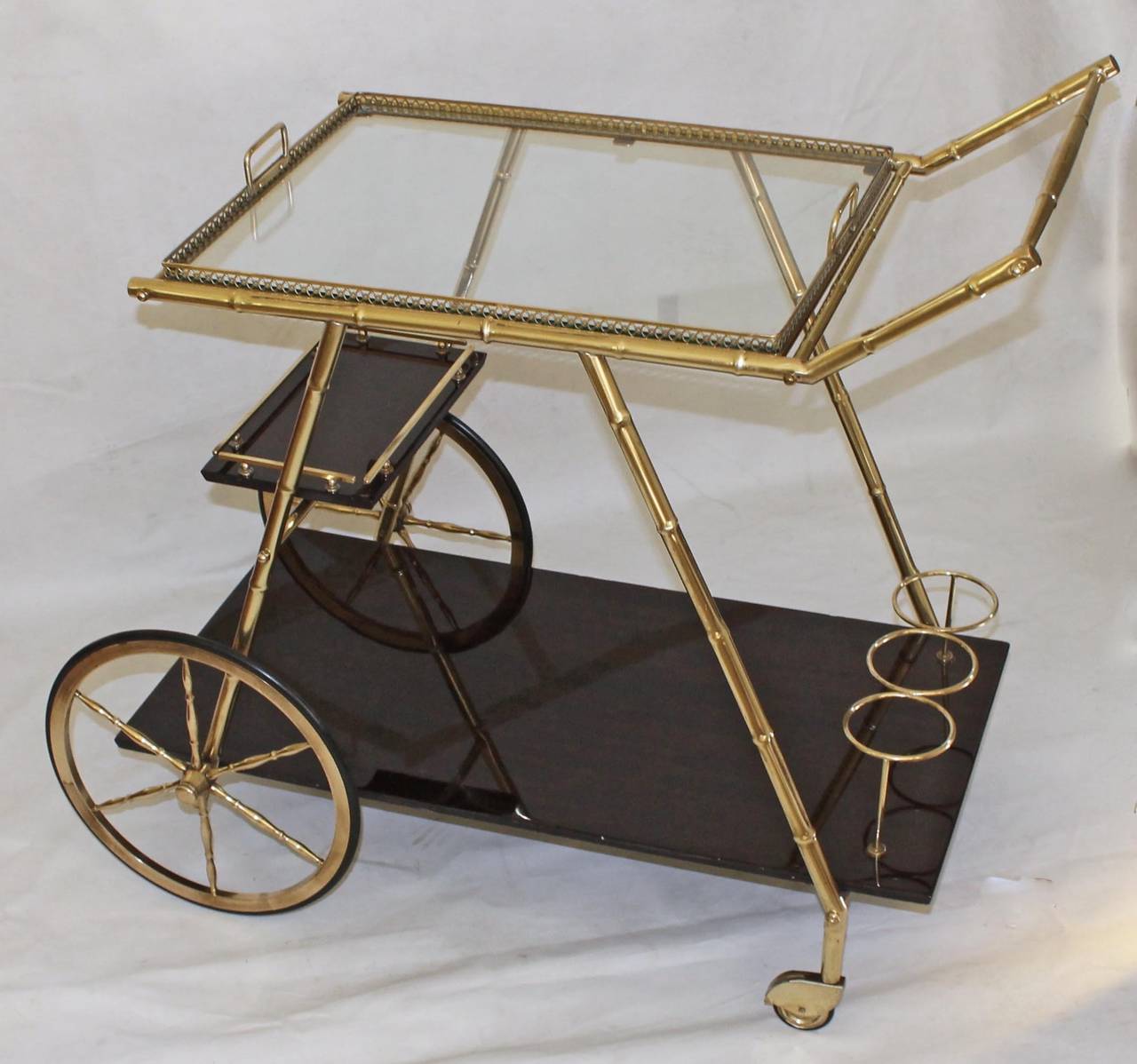 Italian Brass Faux Bamboo and Mahogany Bar Cart