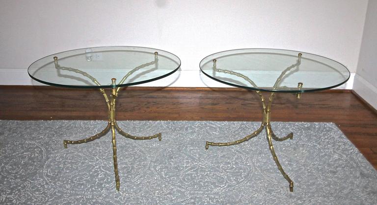 Pair of Bagues Bronze Faux Bamboo Tripod Cocktail or Side Tables