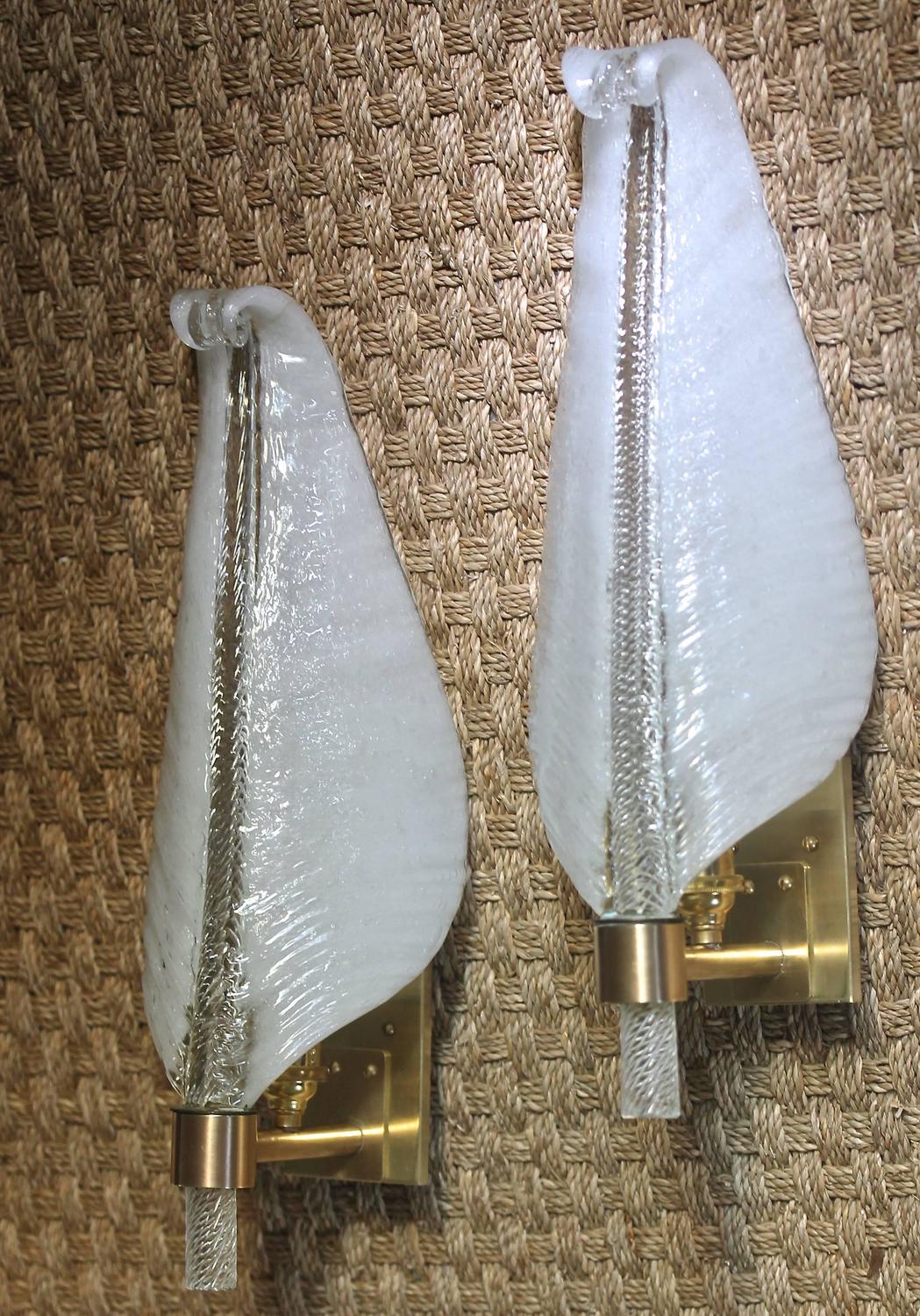 Pair of Barovier Italian Glass Leaf Wall Sconces