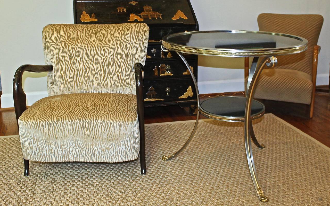 Pair of Maison Jansen Style Gilt Bronze and Steel Gueridons