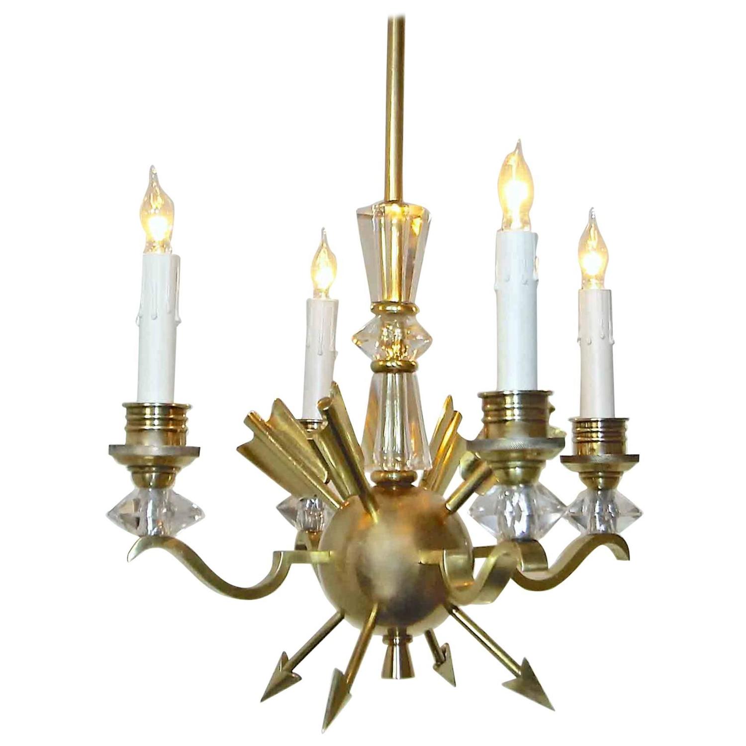 ← French Brass Arrow Directoire Style Chandelier Hall Pendant